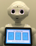 Pepperが表示する複数のカードから1枚を選択し、抽選で商業施設で使用できるクーポンが当たります。
