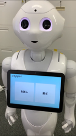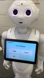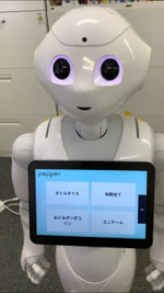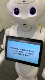 Pepperが来客者向けにAI会話やゲームを提供します。
